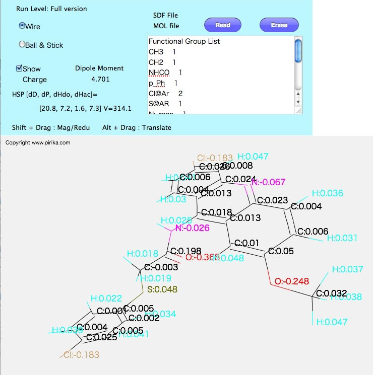 This program iclude 3D QEQ function, so charge calculation result and HSP will display.