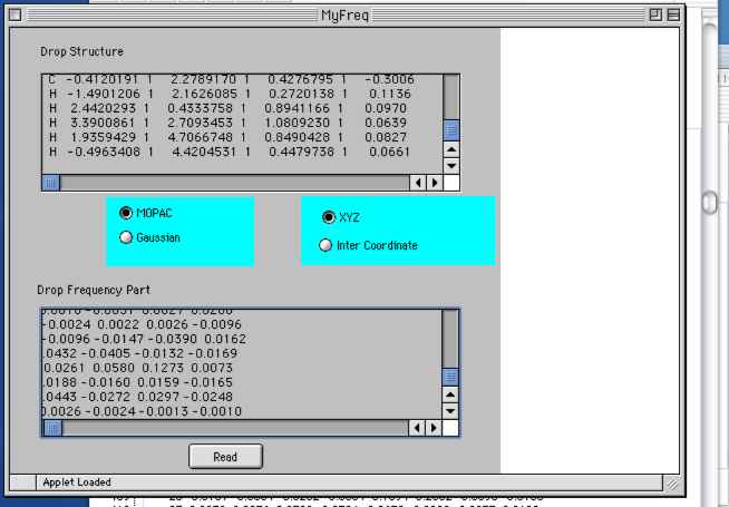 Then you can see molecule. This program support MOPAC ver7, MOPAC ver97 for Mac. Please try and feed back me other system.