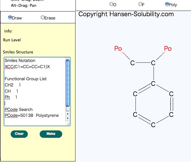 The input format for chemical calculations in HSPiP are SMILES, InChI and MOLfile. There is no GUI input of molecular structure. But if you want to enter polymer smiles, you need to set dummy atoms (X) either end of the SMILES notation which is difficult to do by hand.