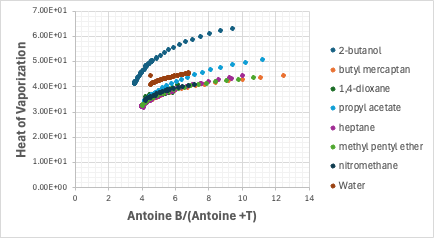 普通考えるとそれは水素結合のような気がする。でもAntoine定数は水素結合が分子運動を妨げるのを込みで定数を決めているはずだ。