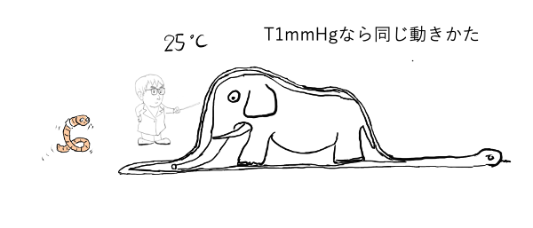 そのT1mmHgで比べるなら、ミミズも象を飲み込んだヘビも同じ動き方をする。