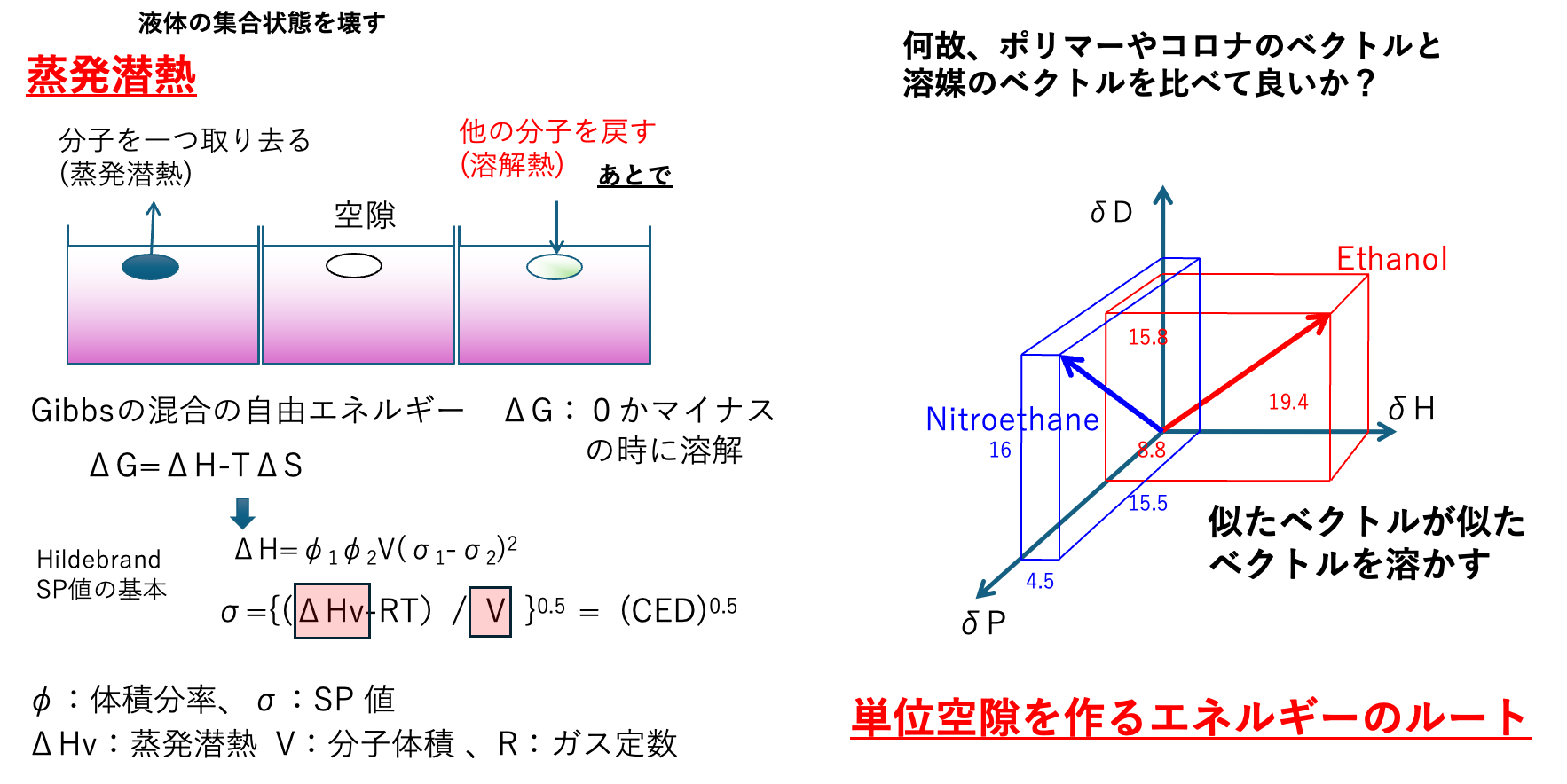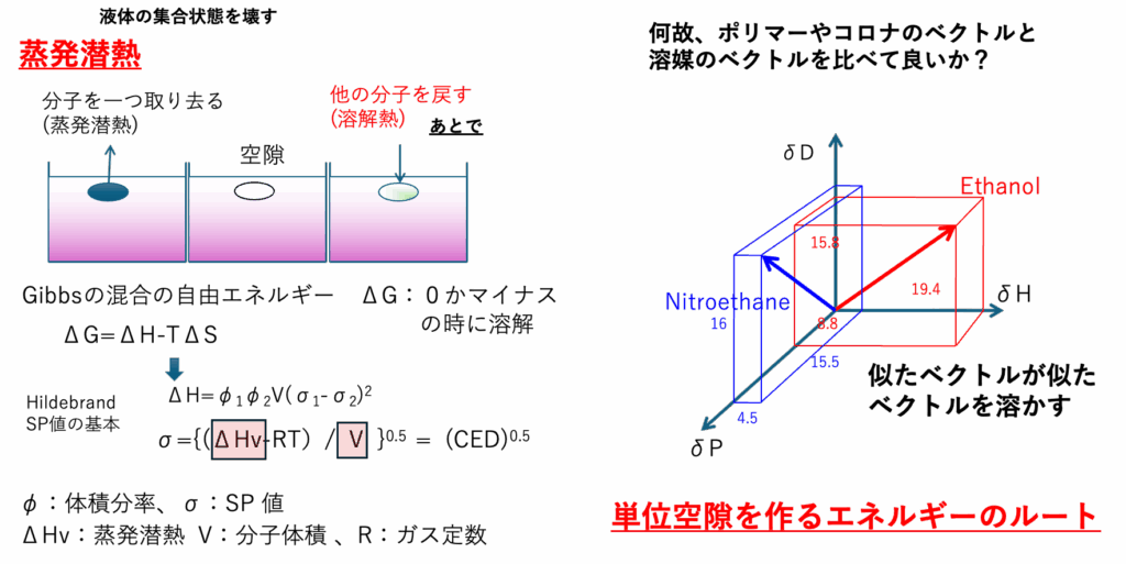 そもそも溶解度パラメータとは何かといえば、「単位空隙を作るエネルギーのルート」のことだ。