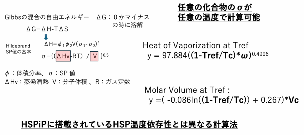 Hansen Solubility Parameters(HSP)だけには温度依存を計算する方法がある。
