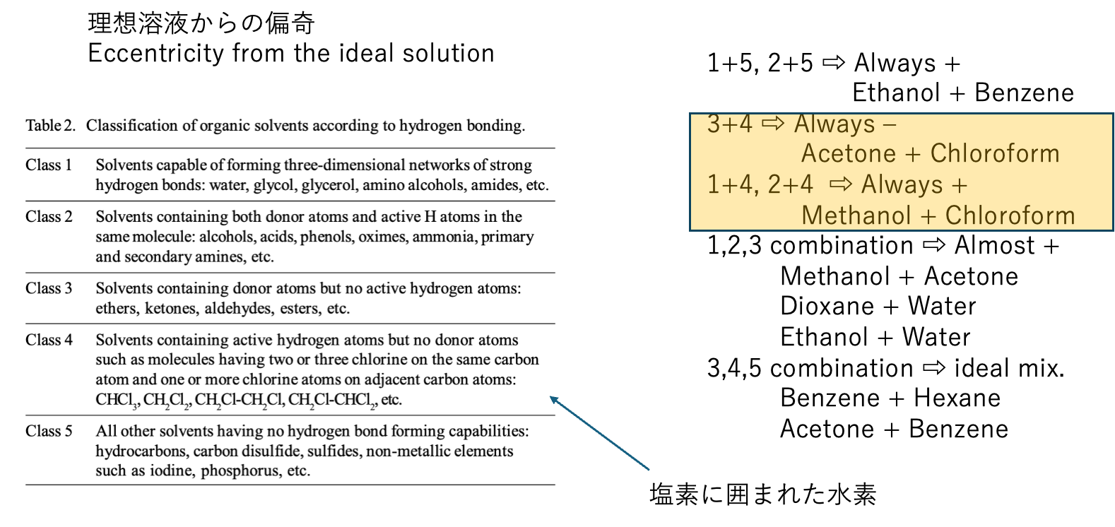 化学工学の世界では一般的だが、液液抽出の時の溶媒のクラス分けにはEwell Hydrogen Bondingを使う事が多い。