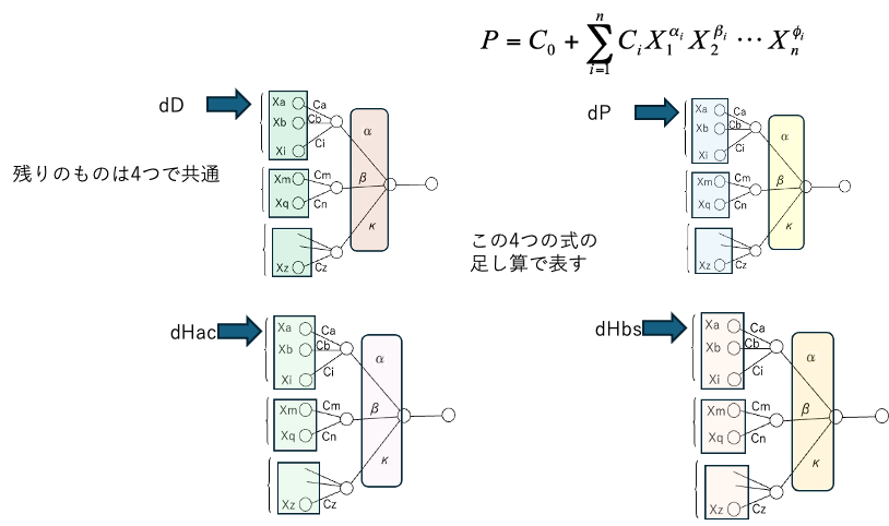 HSP-MIRAIで式が求まっているので、各成分が温度を変えるとどう値が変わるか計算で出すことができるようになる。