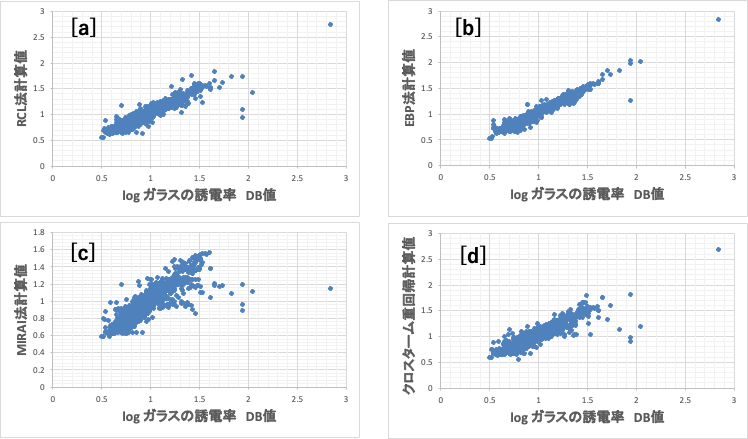 図4で4つの非線形の方法でガラスの誘電率の推算式を作成した。