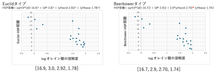HSP距離= sqrt(4*(dD-17.1)2 + (dP-2.5)2 + 2.0*(dHacidOld-1.17)* (dHbaseOld-3.11))