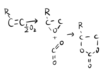 The reaction between CO2 and epoxy compounds has been well known for a long time. It produces a compound called carbonate.